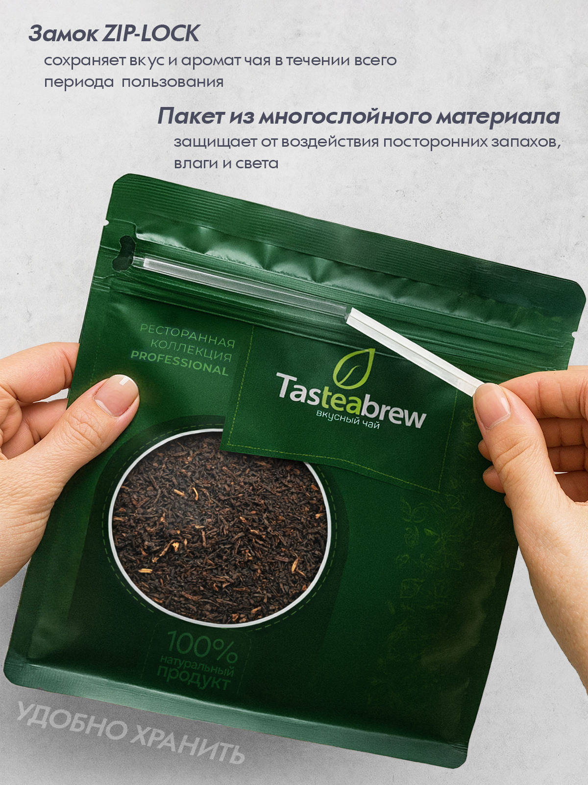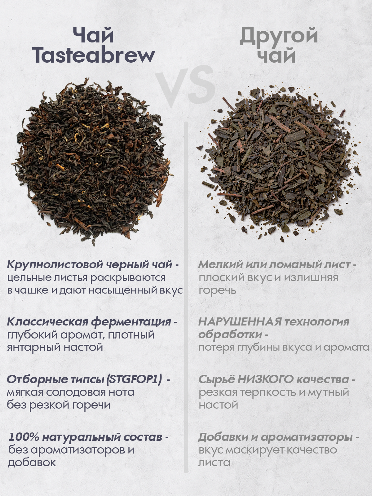 Tasteabrew — бренд, специализирующийся на высококачественных сортах чая. Ассемблирование и фасовка продукции осуществляются в России. Чай Assam High-Grown STGFOP1 рекомендован для истинных ценителей классического черного чая, предпочитающих выразительный вкус и аромат.