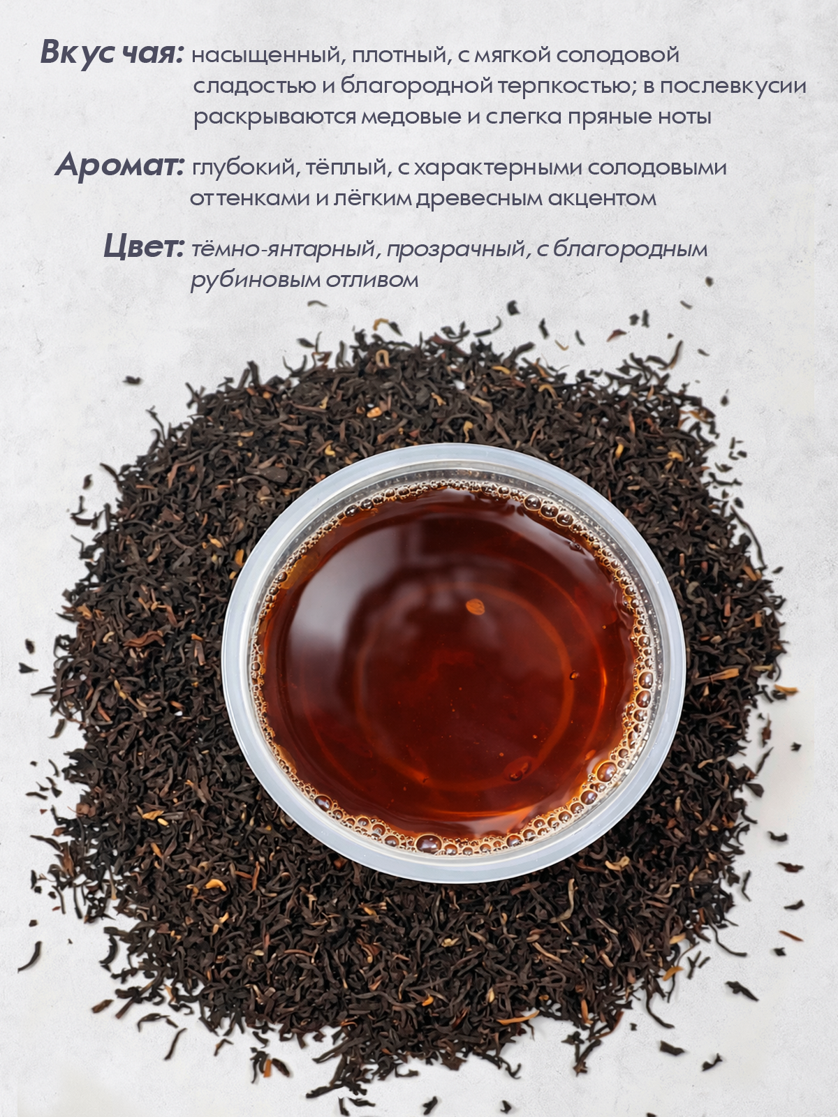 Вкус чая: насыщенный, плотный, с мягкой солодовой сладостью и благородной терпкостью; в послевкусии раскрываются медовые и слегка пряные ноты